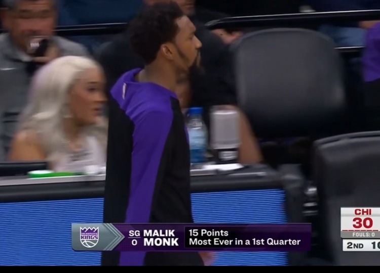蒙克首節(jié)比賽火力全開,三分7投5中拿下15分,三分命中數(shù)追平生涯單節(jié)紀(jì)錄,得分創(chuàng)生涯首節(jié)新高!