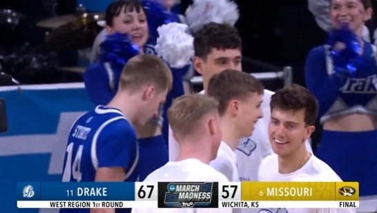 3月21日訊 NCAA瘋狂三月64強(qiáng)賽,分區(qū)11號種子德雷克大學(xué)67-57爆冷擊敗6號種子密蘇里大學(xué)。