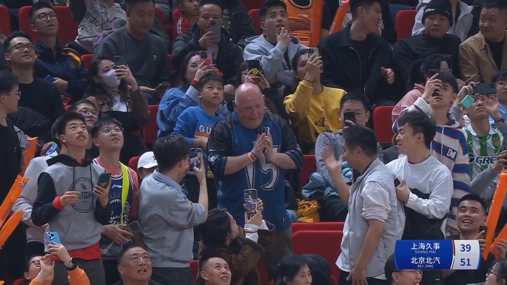 稀客啊當(dāng)年為加內(nèi)特脫衣熱舞的森林狼球迷大叔來到了CBA現(xiàn)場