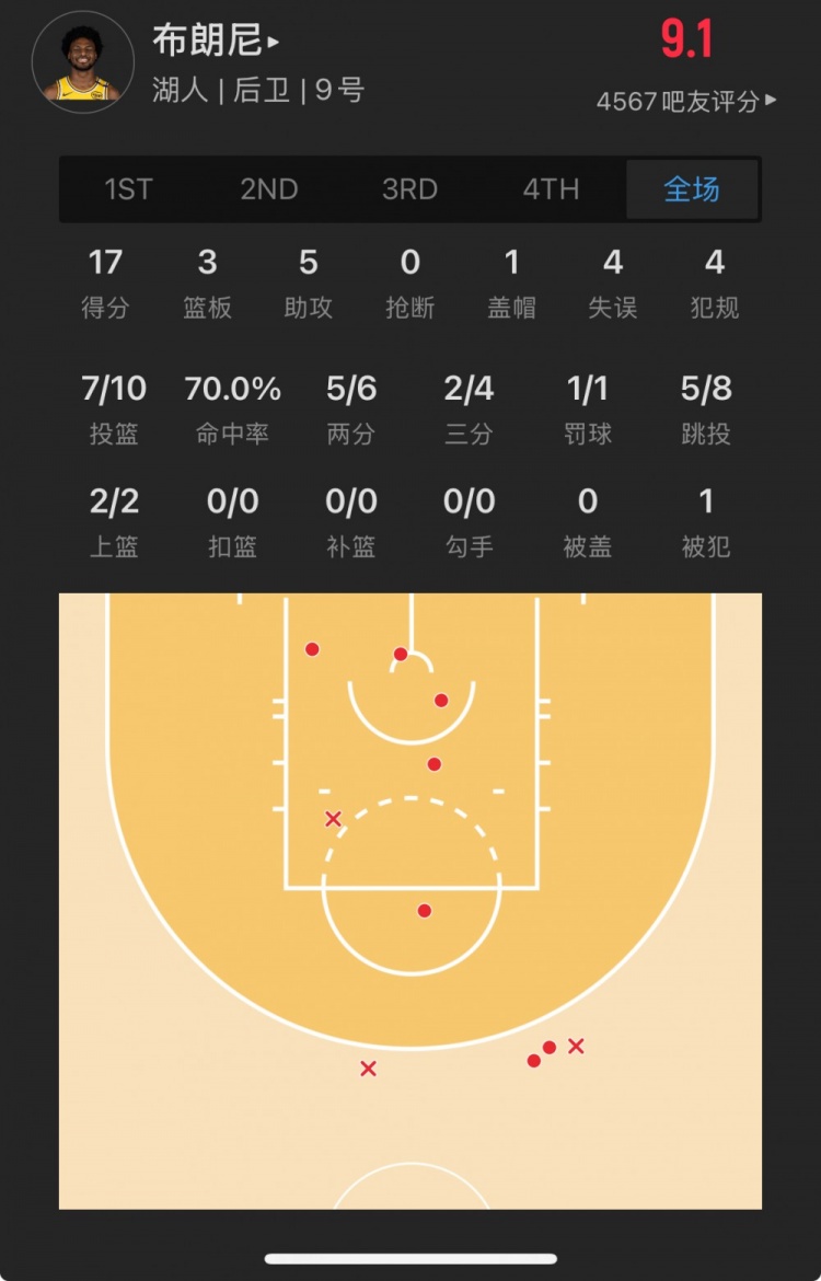 湖人55號秀 布朗尼-詹姆斯 登場29.9分鐘