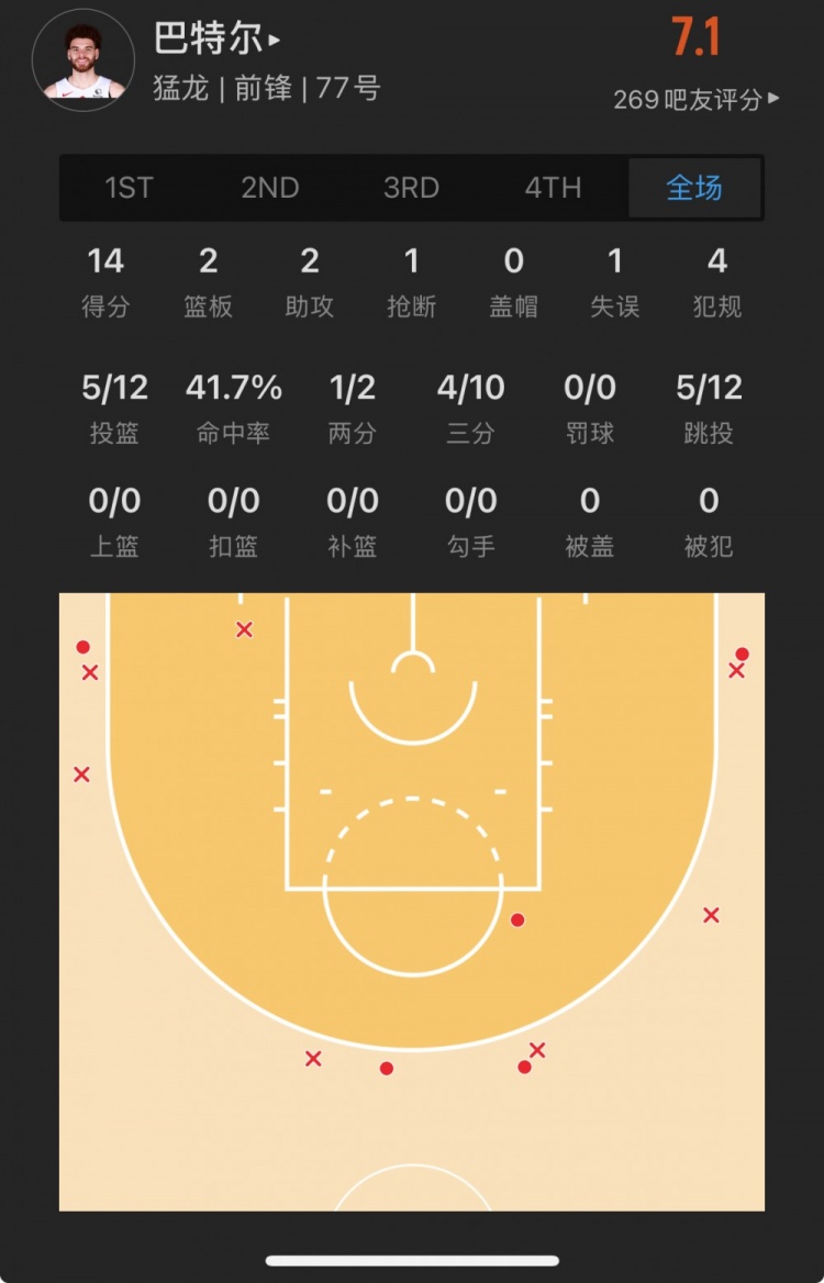 猛龍落選秀 賈米森-巴特爾 登場33.0分鐘