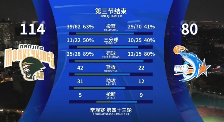 同曦前三節(jié)進攻端全面開花,不僅配合流暢,手感也是相當火熱。全隊投籃命中率達到63%,62投39中,其中三分球22投11中,命中率達到50%,罰球28罰25中,全隊搶下42個籃板,比福建多20個,全隊助攻31次,比對手多19次。