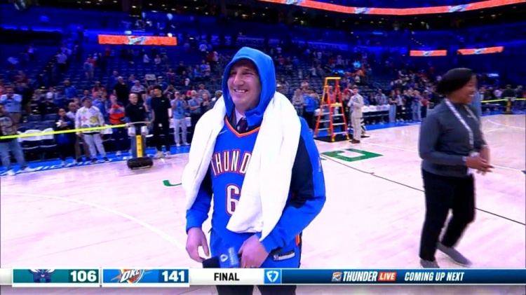 哈哈哈哈!雷霆隊(duì)記采訪華萊士時(shí) 被一眾隊(duì)員各種套衣服惡搞
