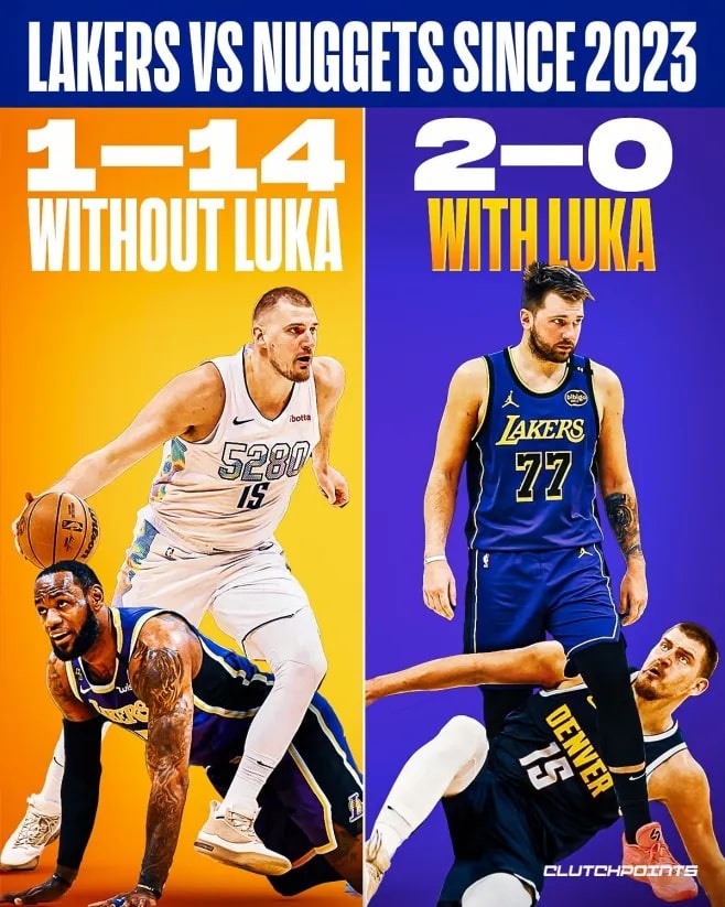 2023年以來無東契奇的湖人1-14掘金 有東契奇的湖人2-0掘金