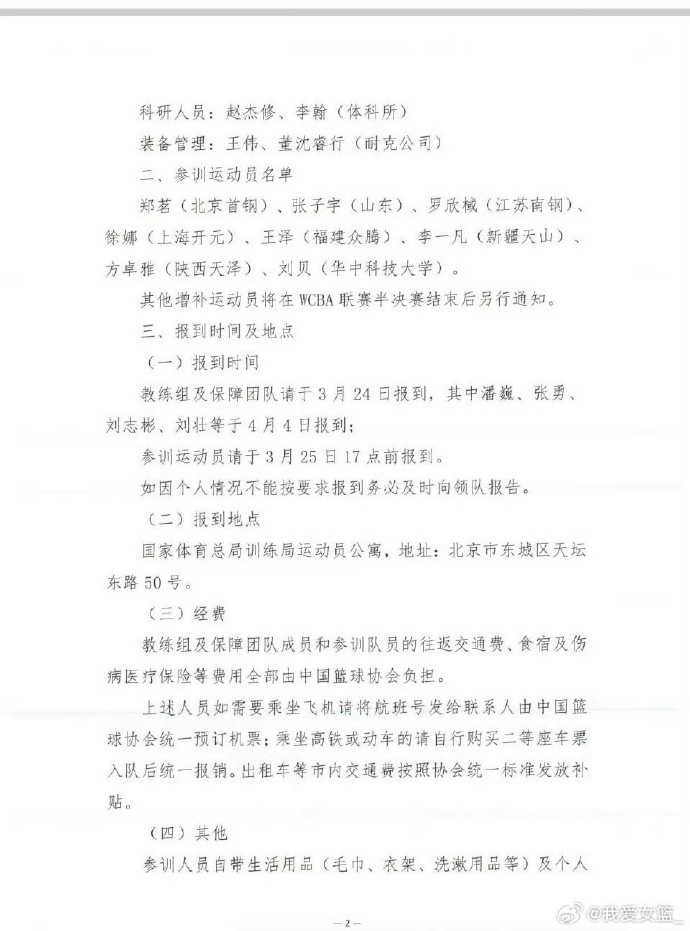 中國(guó)女籃發(fā)布短訓(xùn)營(yíng)通知,備注矚目的張子宇首次入選中國(guó)女籃集訓(xùn)名單。除了這8人外,其他增補(bǔ)運(yùn)動(dòng)員將在WCBA聯(lián)賽半決賽結(jié)束后另行通知。中國(guó)籃協(xié)計(jì)劃于3月24日至4月20日舉辦為期四周的國(guó)家女籃短訓(xùn)營(yíng)。