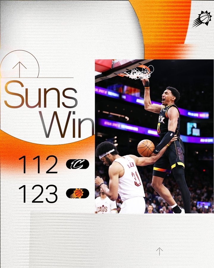 賽后,太陽(yáng)官方曬出贏球海報(bào),新秀瑞安-鄧恩戰(zhàn)斧重扣賈勒特-阿倫的場(chǎng)景登上封面。