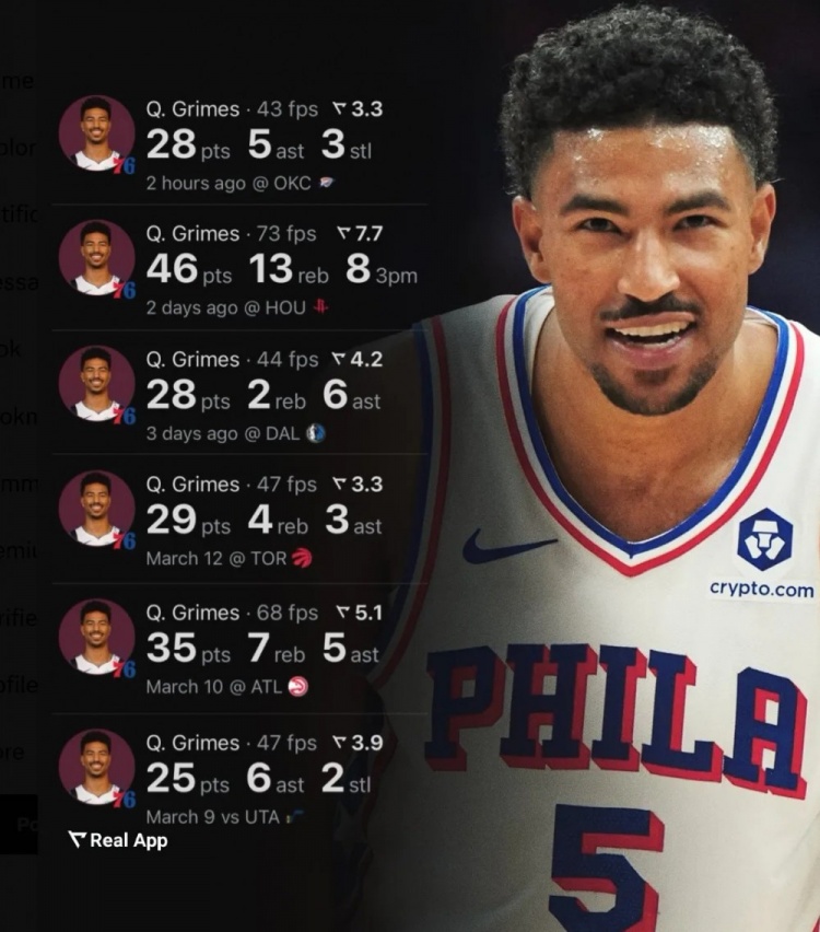 一邊是兩大頂薪報(bào)銷,一邊是清倉拋售當(dāng)家球星,正當(dāng)專家球迷們糾結(jié)年度最二管理層應(yīng)該頒給76人還是獨(dú)行俠的時(shí)候,很快一個(gè)球員用一波個(gè)人秀宣告了比賽結(jié)束:穿上費(fèi)城球衣的昆廷-格萊姆斯在18場比賽里場均轟下21.8分,其中包括一場對火箭的46分,一場對勇士的44分,還有一場重返達(dá)拉斯干翻全場的28分帶走勝利,現(xiàn)實(shí)上演了一出爽文劇情。