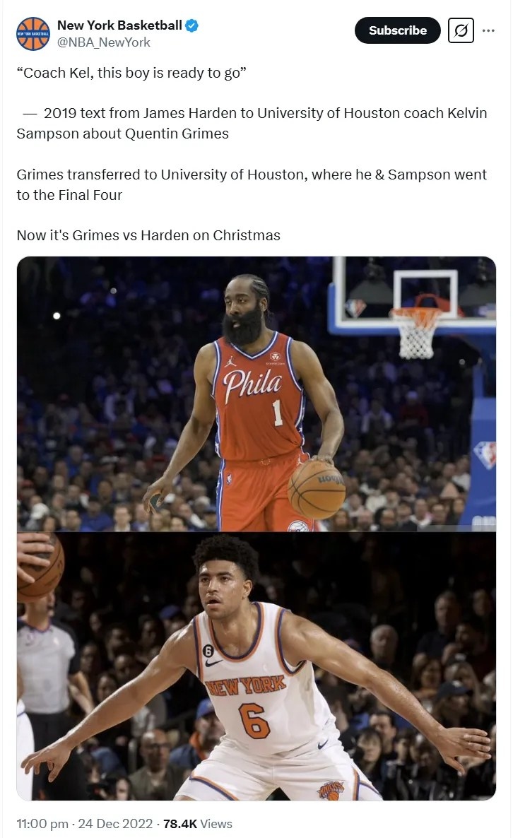在休斯敦期間,格萊姆斯的擋拆防守和后場籃板能力大大提高了,這兩項(xiàng)后來成為了他在NBA的立足之本。2021年選秀大會,他在首輪第25順位被尼克斯摘走——對于曾經(jīng)被看好拿下前五順位的天才來說,這個(gè)結(jié)果多少有些讓人失望,但格萊姆斯心態(tài)很好,這得益于他在學(xué)生時(shí)代一直養(yǎng)成的性格,格萊姆斯堅(jiān)信,就算兩年前他以高順位進(jìn)入NBA,該學(xué)的東西還是要從頭學(xué)起,從一個(gè)較低的起點(diǎn)出發(fā)不一定是壞事。