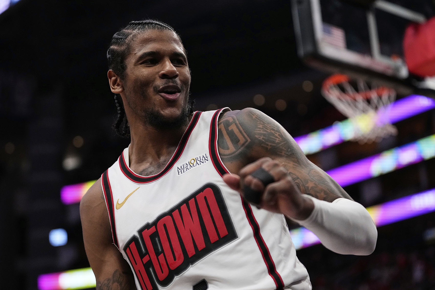 本場比賽,杰倫-格林表現(xiàn)優(yōu)秀,出場37分鐘,18投8中,三分11中3,罰球10中7,砍下26分7板2助,正負(fù)值+19。