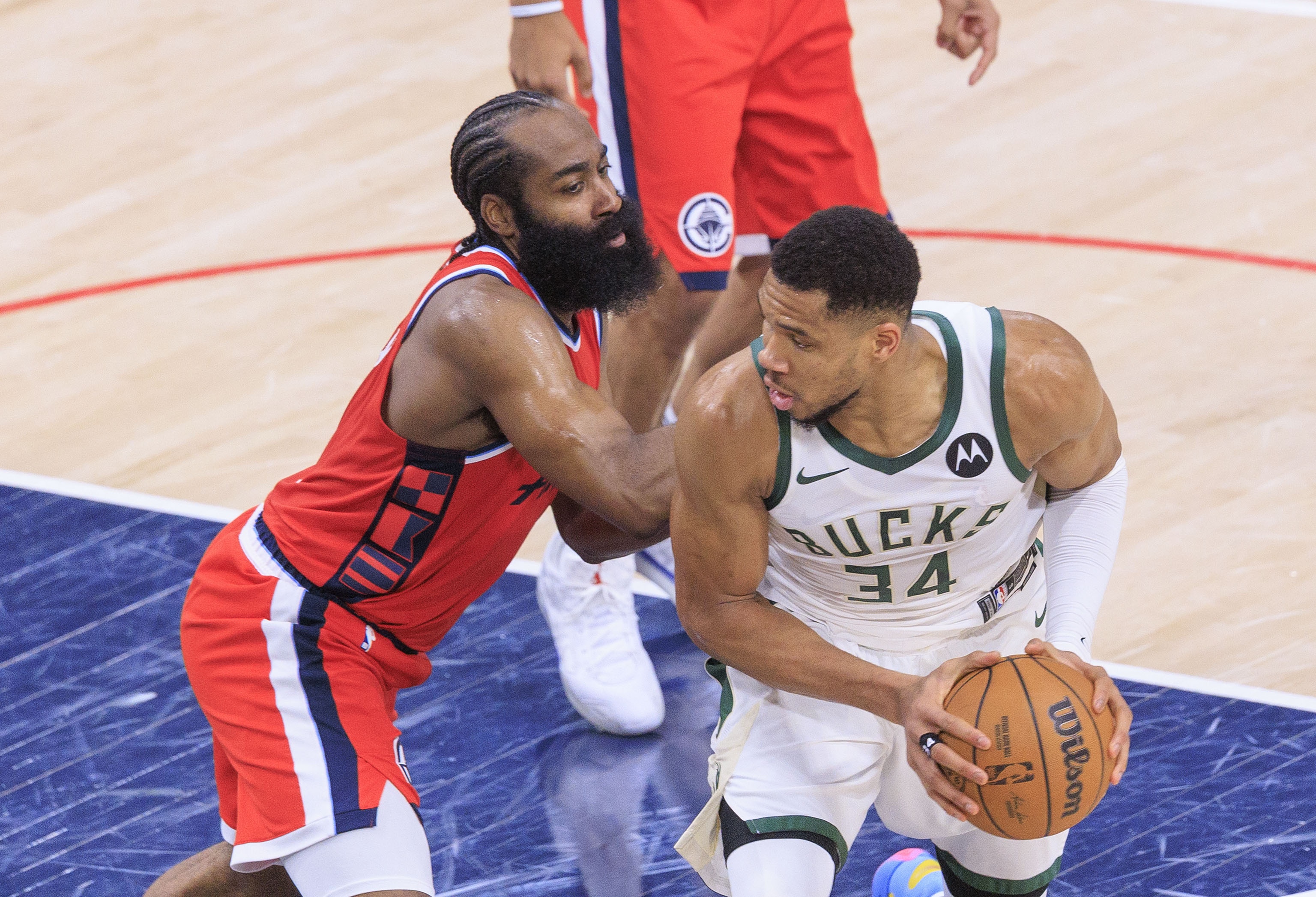 防守端,哈登承擔(dān)了很多小防大的任務(wù)。1月26日快船擊敗雄鹿是哈登本賽季的代表作之一,他在進(jìn)攻端拿下40分、9助攻,防守端則在第四節(jié)壓制了阿德托昆博。祖巴茨不在場(chǎng)時(shí),哈登大量對(duì)位阿德托昆博,后者全場(chǎng)拿下36分,但只有6分來(lái)自哈登主防他的第四節(jié)。