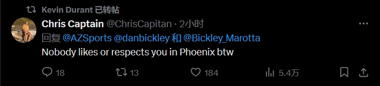 球迷二:在菲尼克斯沒(méi)人尊重你,只是順帶一提哈!