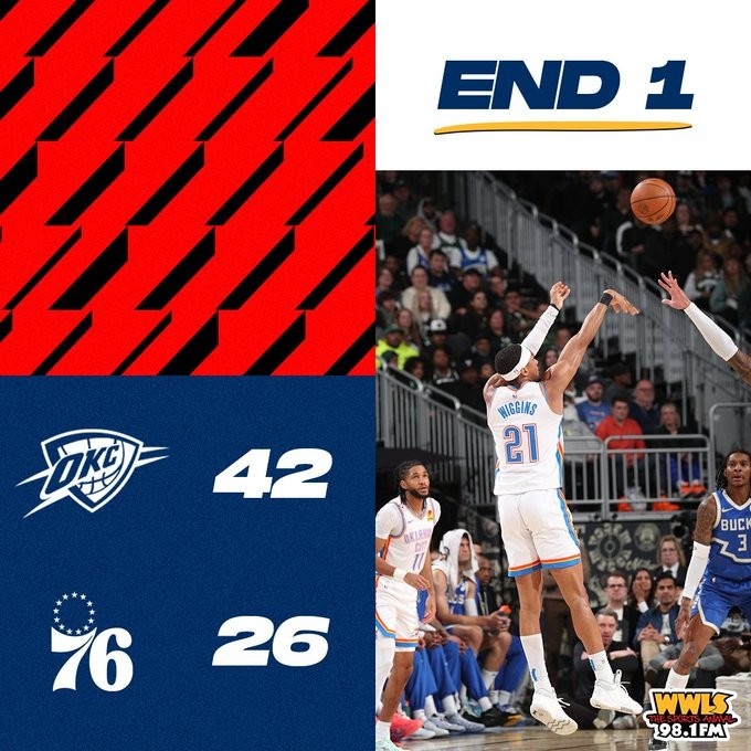 本場(chǎng)比賽,雷霆全隊(duì)輪休主力但仍火力十足。首節(jié)轟下42分創(chuàng)下了球隊(duì)賽季首節(jié)新高!