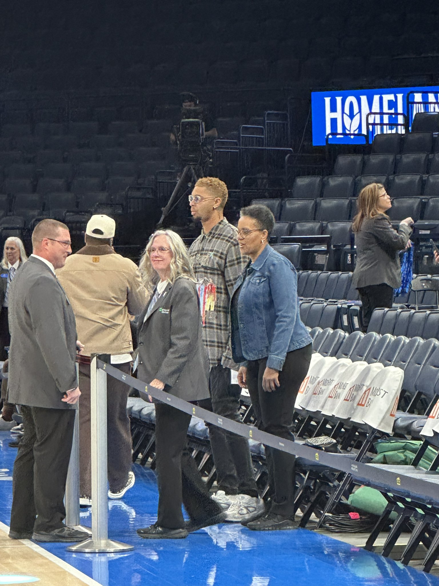 03月20日訊 NBA常規(guī)賽,雷霆主場迎戰(zhàn)76人,前雷霆球員、現(xiàn)國王老板女兒安佳麗的男友杰里米-蘭姆現(xiàn)場觀戰(zhàn)。