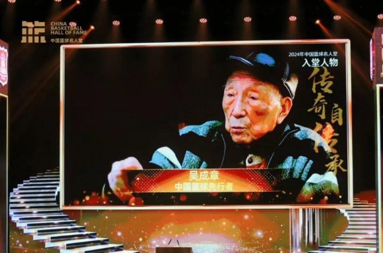 現(xiàn)年101歲的吳成章老人是李震中先生1948年奧運會的隊友,雖然無法親臨現(xiàn)場,他仍通過視頻表達了自己進入名人堂的喜悅。吳老之子吳忻水代父親領(lǐng)取名人堂徽章,并分享了他們之間的“父子籃球”軼事。