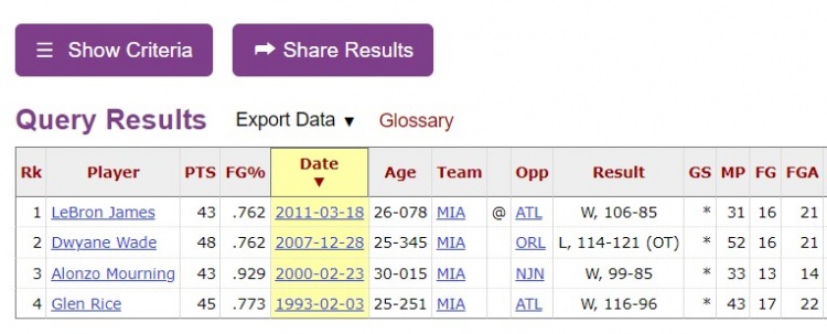 以至少75%命中率砍下40+,在熱火隊史上是第5次。前四次是格倫-萊斯、莫寧、韋德和詹姆斯。