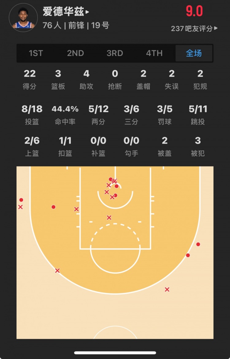 76人落選秀 賈斯汀-愛德華茲 登場39.2分鐘