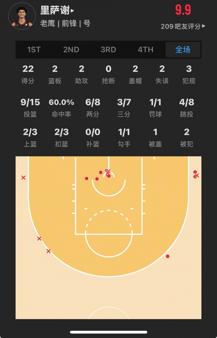 老鷹狀元秀 扎卡里-里薩謝 登場26.9分鐘