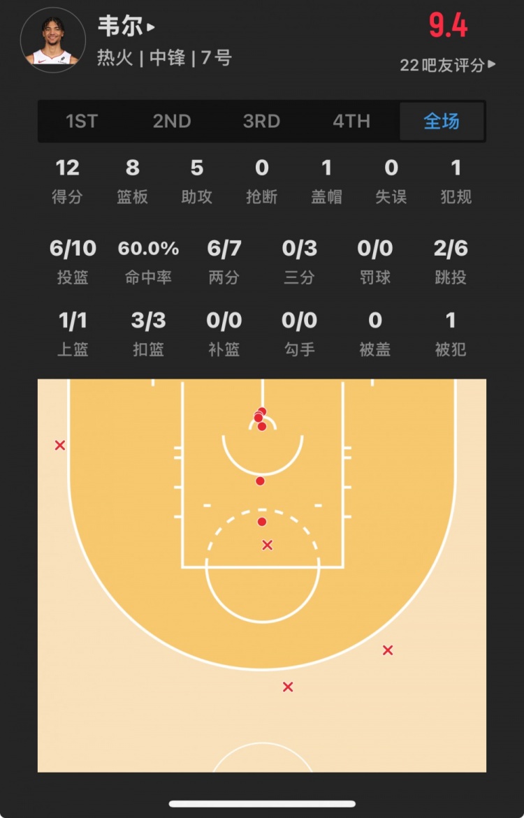 熱火15號秀 克雷爾-韋爾 登場28.2分鐘