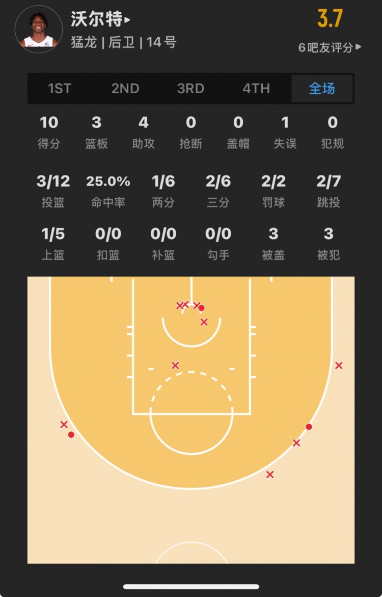猛龍19號秀 賈科比-沃爾特 登場24.5分鐘
