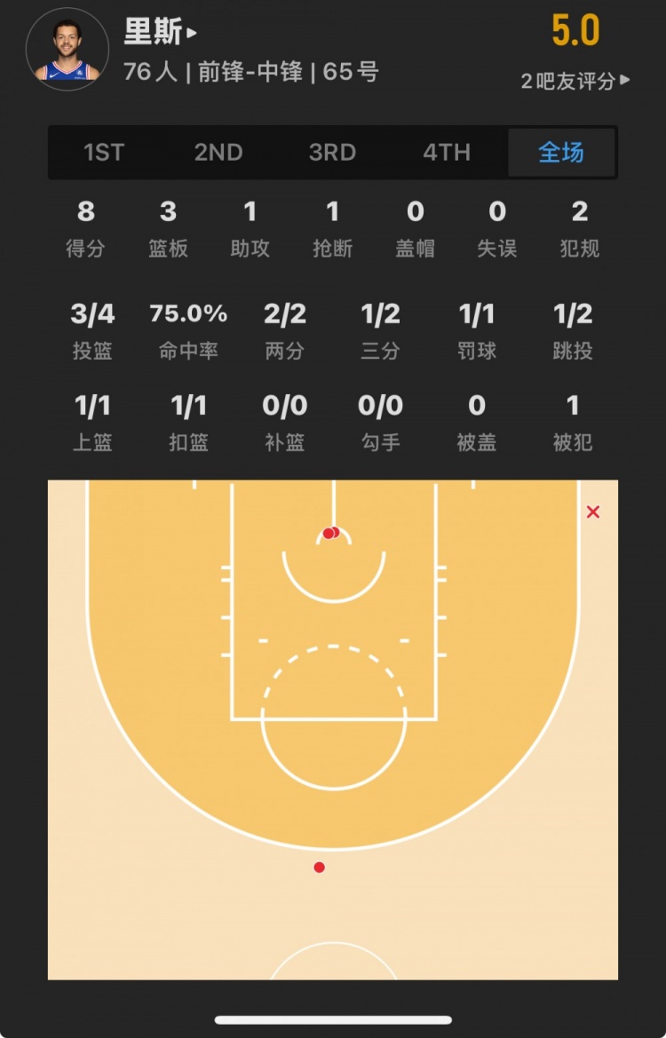 76人落選秀 亞歷克斯-里斯 登場21.3分鐘