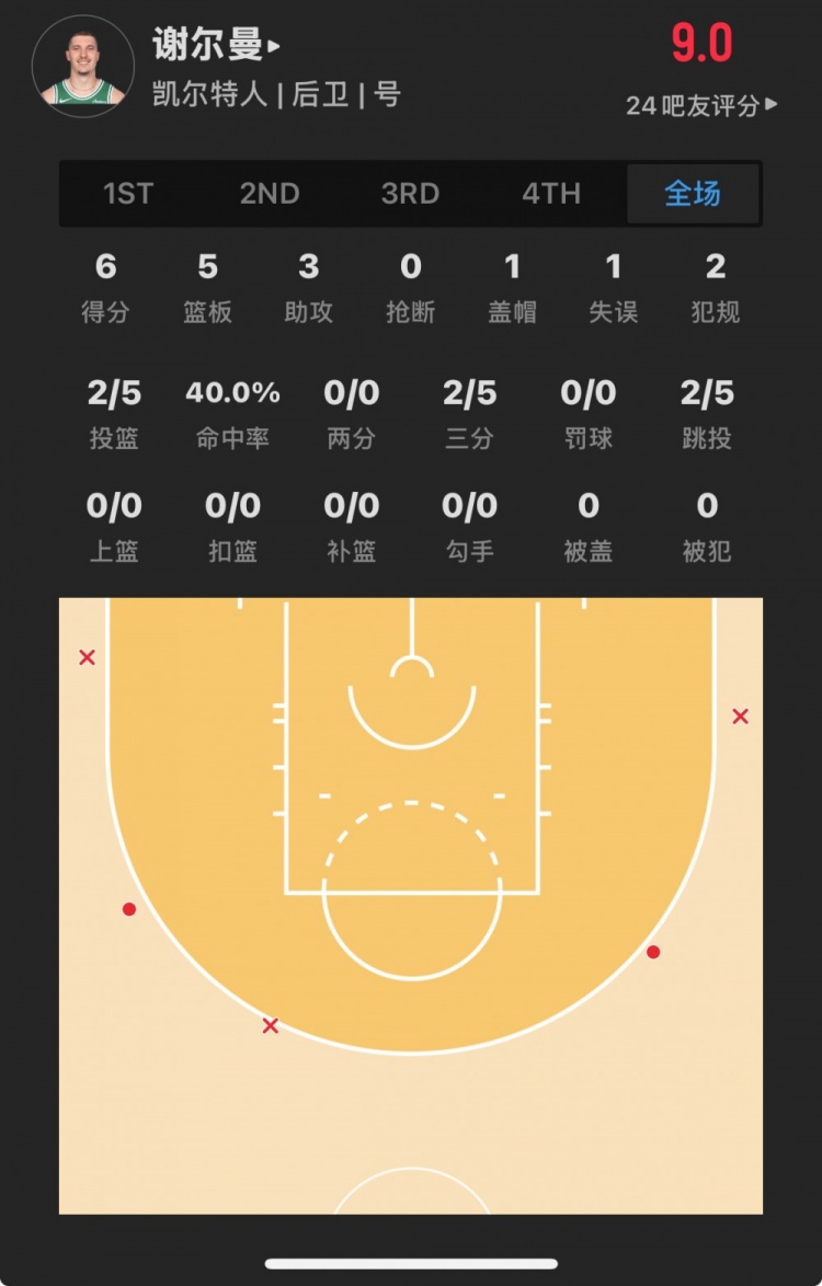 凱爾特人30號秀 貝勒-謝爾曼 登場26.0分鐘