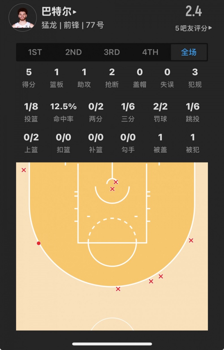 猛龍落選秀 賈米森-巴特爾 登場21.9分鐘