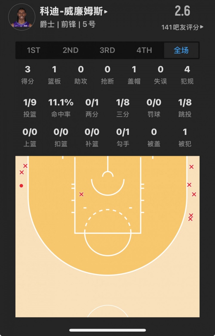 爵士10號秀 科迪-威廉姆斯 登場22.4分鐘