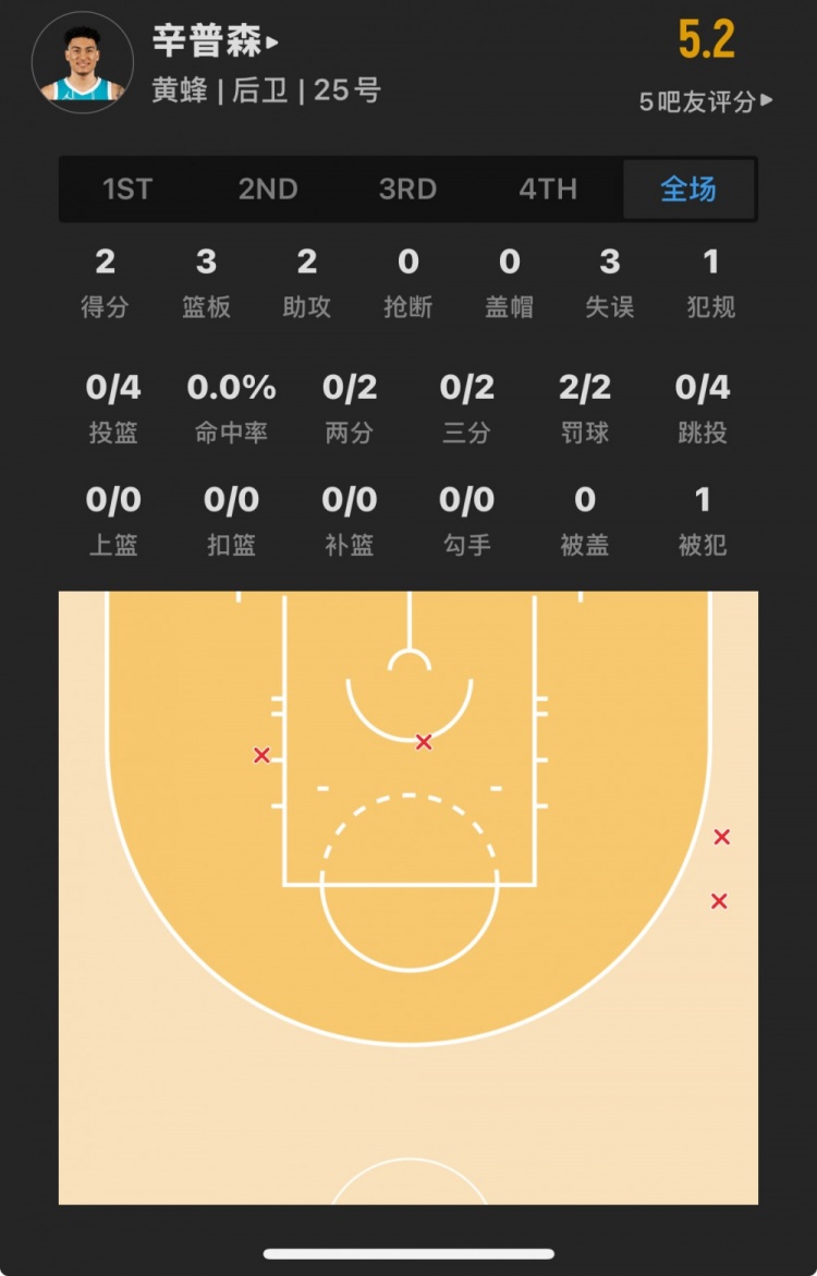 黃蜂42號秀 KJ-辛普森 登場22.1分鐘