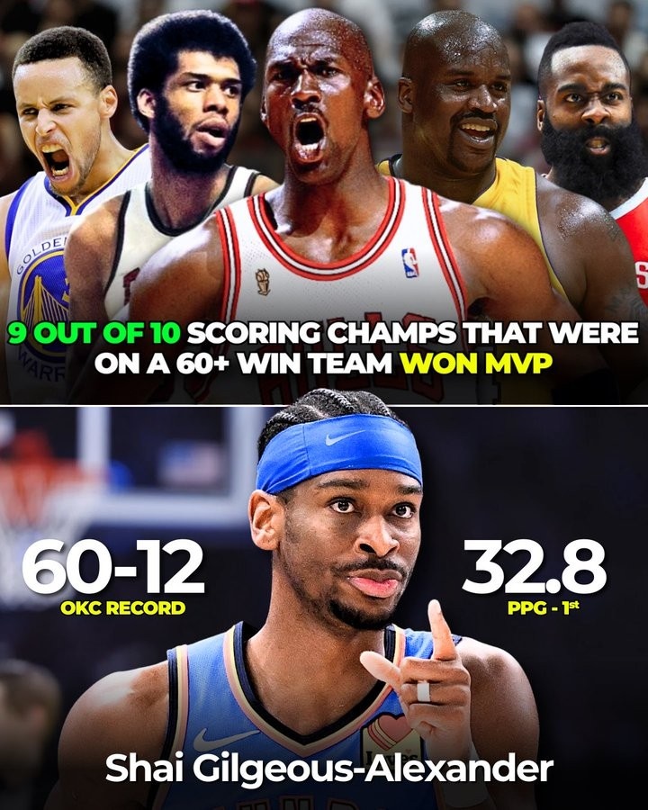 而在NBA歷史上,一共有10次得分王得分王帶隊(duì)60+勝場(chǎng),其中9個(gè)都拿到了MVP,除了1997年的喬丹(MVP是馬龍),這9次分別是:賈巴爾(2次)、喬丹(4次)、奧尼爾、庫里、哈登。