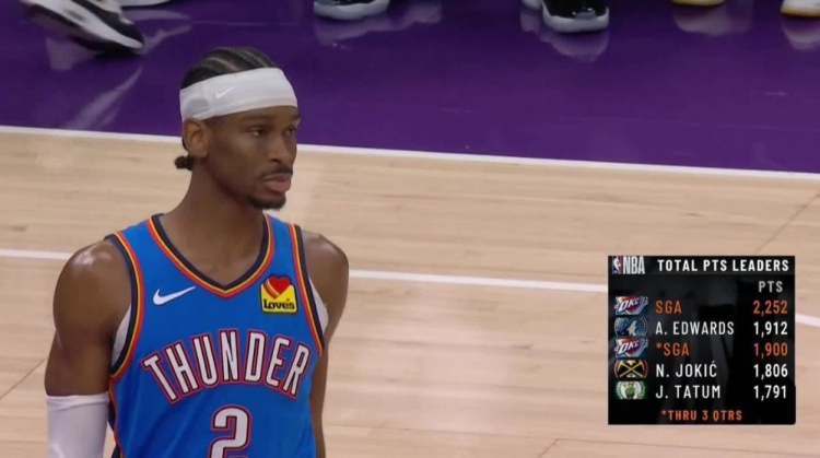 SGA賽季前三節(jié)總得分1900幾乎平華子賽季總分 領(lǐng)先約基奇獺兔