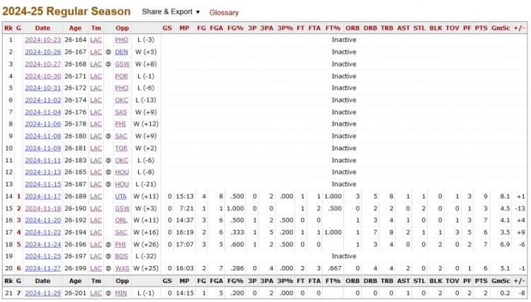 此役,快船內(nèi)線班巴出戰(zhàn)12分35秒,2投全中(三分1中1)、罰球2中1,得到6分5籃板1搶斷2蓋帽,正負(fù)值-2。
