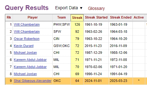 同時,亞歷山大連續(xù)65場20+超越杜蘭特,升至雷霆隊史第一(杜蘭特的72場是雷霆+勇士)