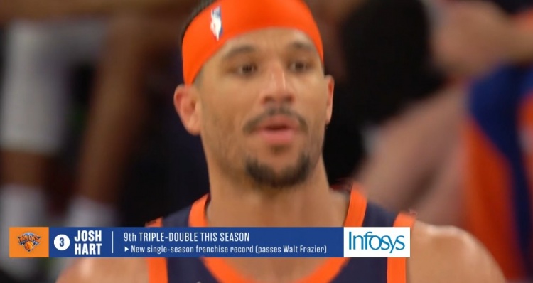 目前,約什-哈特已經(jīng)得到了13分11籃板10助攻,這是他個人本賽季第9次三雙,超越沃爾特-弗雷澤,創(chuàng)尼克斯單賽季三雙紀(jì)錄。