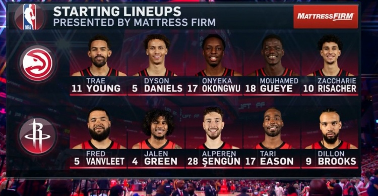 火箭首發(fā):范弗里特、杰倫-格林、申京、伊森、狄龍;