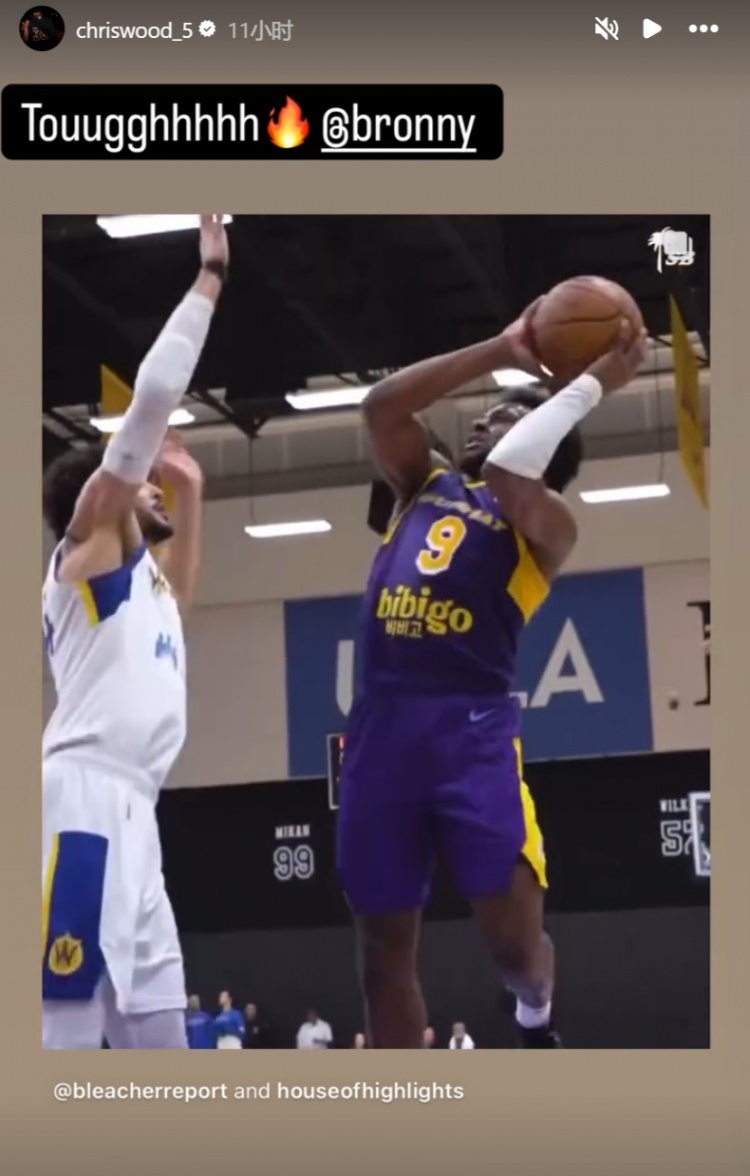 比賽中,布朗尼帥氣變向后面對(duì)貼防打進(jìn)高難度后仰跳投,前隊(duì)友伍德轉(zhuǎn)發(fā)道:“太難了@布朗尼。”