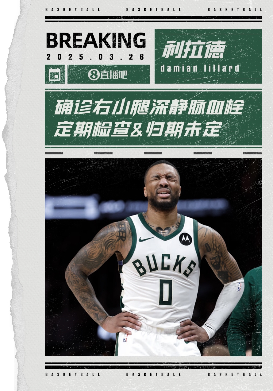 03月26日訊 名記Shams報(bào)道,雄鹿后衛(wèi)利拉德確診為右小腿深靜脈血栓(DVT)將無(wú)限期休戰(zhàn)。