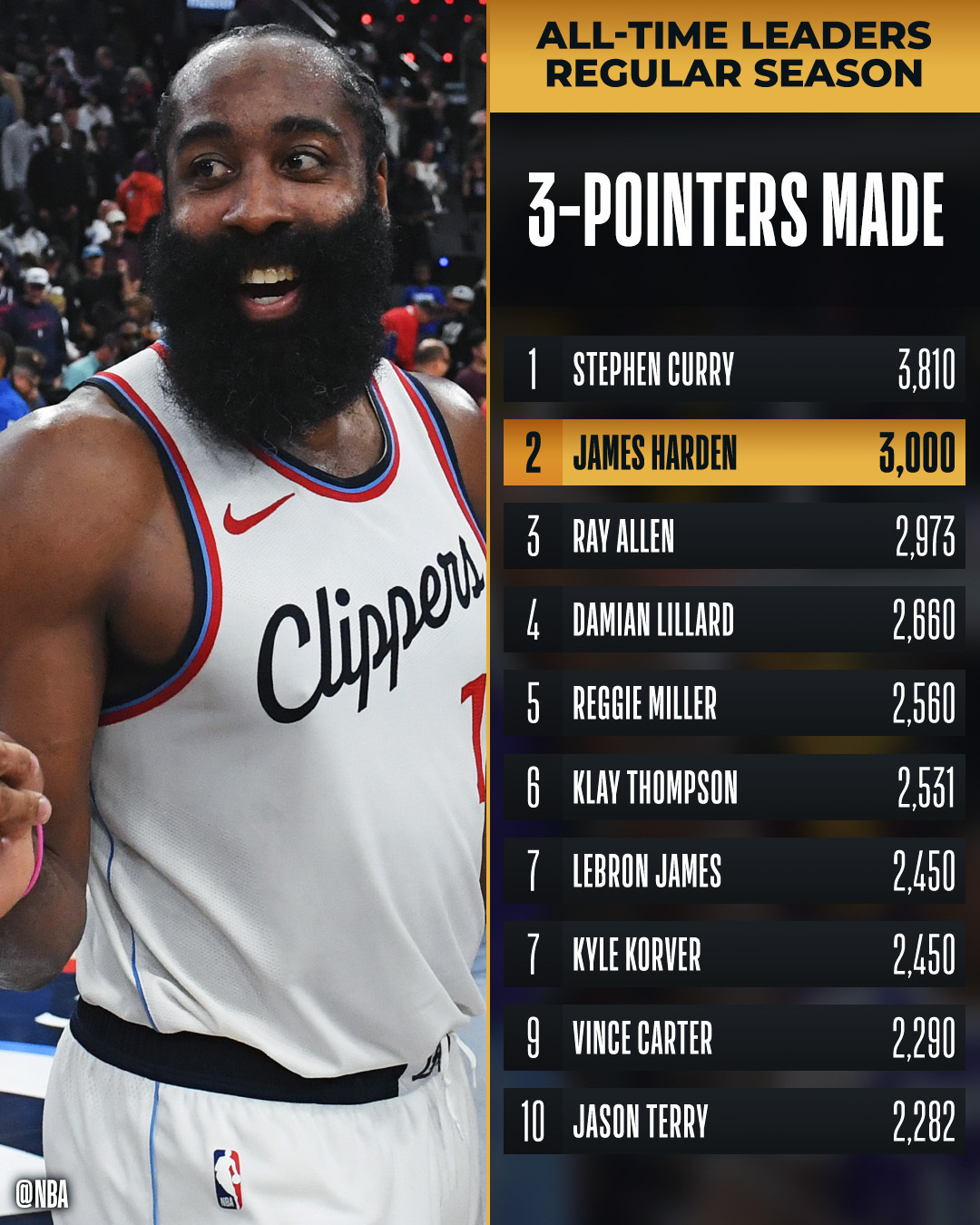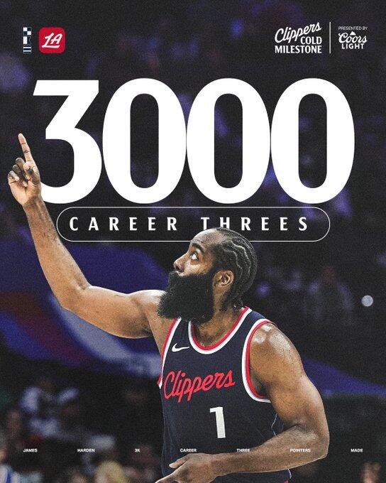 第二節(jié)2分29秒,哈登命中本場(chǎng)第2個(gè)三分,生涯總?cè)謹(jǐn)?shù)解鎖里程碑來(lái)到3000記,歷史第二人,僅次庫(kù)里!