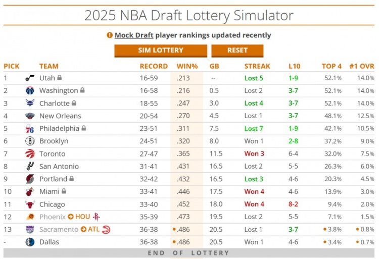 不過,如果從另一個方面看,76人無緣附加賽也不算壞事,目前他們的戰(zhàn)績聯(lián)盟第5差,將很有機(jī)會保住自己今年的首輪簽。如果以倒數(shù)第5的排名結(jié)束賽季,76人有42.1%的概率抽中前四,最差是第9。如果常規(guī)賽最后階段還能繼續(xù)降低自己的排名,他們還能增加保住自己今年首輪的概率。