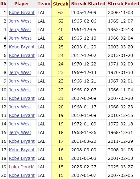 目前,東契奇已經(jīng)連續(xù)15場(chǎng)比賽20+,為湖人隊(duì)史第3位做到的后衛(wèi)球員,此前兩位是科比和杰里-韋斯特。