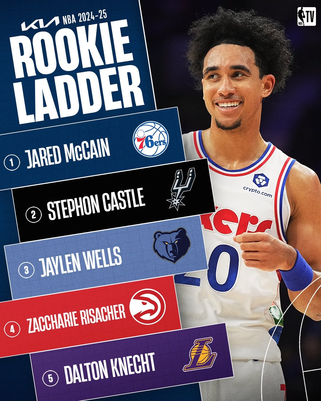 12月05日訊 NBA官方公布了最新一期的新秀榜,“魔仙哥”麥凱恩繼續(xù)排名榜首,卡斯爾和韋爾斯分列二三位,里薩謝位列第四,克內克特排在第五,扎克-埃迪第八。