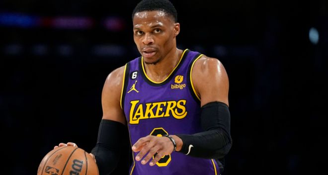 威少的生涯轉(zhuǎn)折點(diǎn),始于加盟湖人的那段時(shí)光。2021年夏天,湖人以“詹姆斯+戴維斯+威少”的三巨頭陣容,劍指總冠軍,可誰(shuí)也沒(méi)料到,這套看似豪華的組合,會(huì)成為威少“身價(jià)暴跌”的開(kāi)端。湖人彼時(shí)的戰(zhàn)術(shù)體系,以詹姆斯和戴維斯為核心,更傾向于慢節(jié)奏的陣地戰(zhàn)——為了照顧詹姆斯的持球組織和戴維斯的內(nèi)線攻堅(jiān),球隊(duì)刻意放慢進(jìn)攻速度,這與威少“以快制勝”的風(fēng)格完全相悖。作為聯(lián)盟頂級(jí)的持球手,威少需要球權(quán)來(lái)發(fā)動(dòng)快攻、串聯(lián)隊(duì)友,可詹姆斯同樣是“持球核心”,兩人同時(shí)在場(chǎng)時(shí),球權(quán)分配成為無(wú)解難題;而當(dāng)威少被迫打無(wú)球時(shí),他糟糕的外線投射(當(dāng)時(shí)三分命中率不足30%)又成了球隊(duì)的“進(jìn)攻漏洞”,對(duì)手甚至?xí)桃夥趴账A擊詹眉。