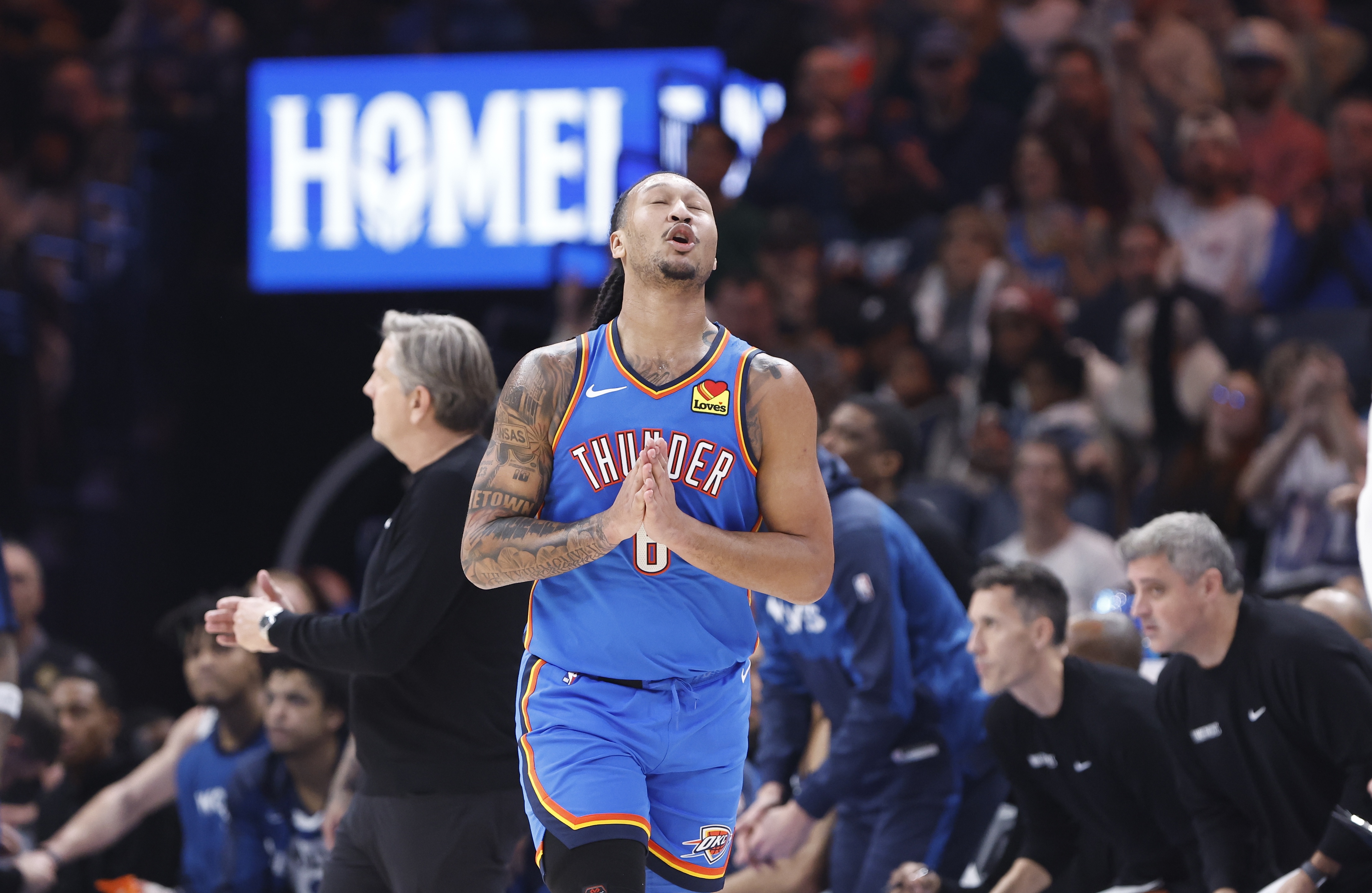 賽后,雷霆球員阿隆-維金斯談到了隊友杰林-威廉姆斯在球隊的角色:“他就是那個在場上場下都有作用的角色。他的性格很有感染力,他每天都給我們帶來好的感覺。”
