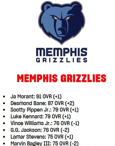 3月21日訊 今天,NBA 2K更新了球員的能力值,灰熊的變化情況如下: