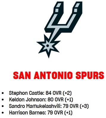 馬刺球員2K能力值更新:4號秀卡斯?fàn)?2至84 馬穆+3 烤雞&巴恩斯+1