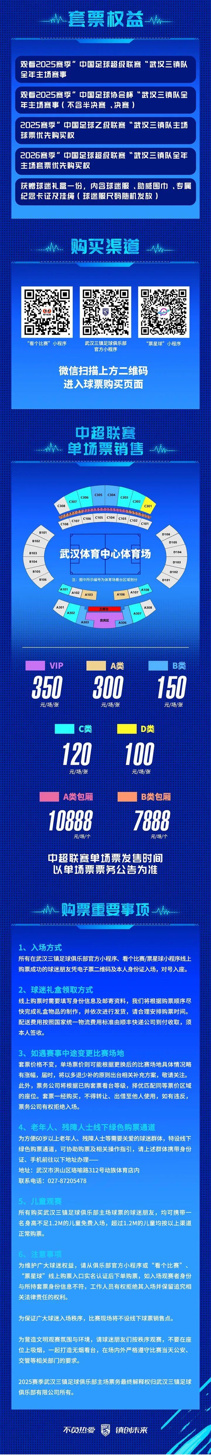 迎接主場,登上看臺,我們一起為武漢、為三鎮(zhèn)而戰(zhàn)!主場票務詳情請查看下圖: