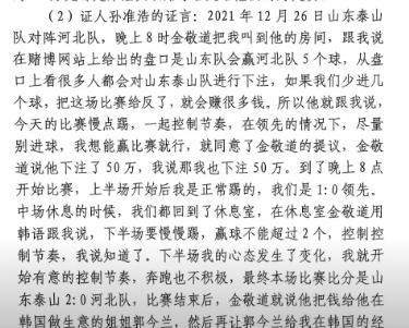 昨日網(wǎng)傳足壇假賭黑判決書,其中孫準浩的證言有兩部分。