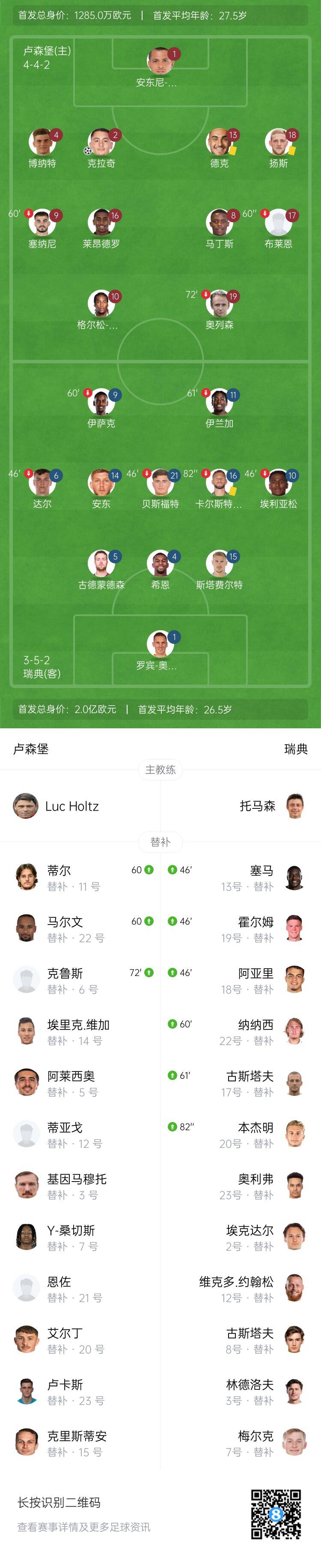 盧森堡則沒有明星球員,首發(fā)身價也只有1285萬歐,球隊的世界排名僅為92名。