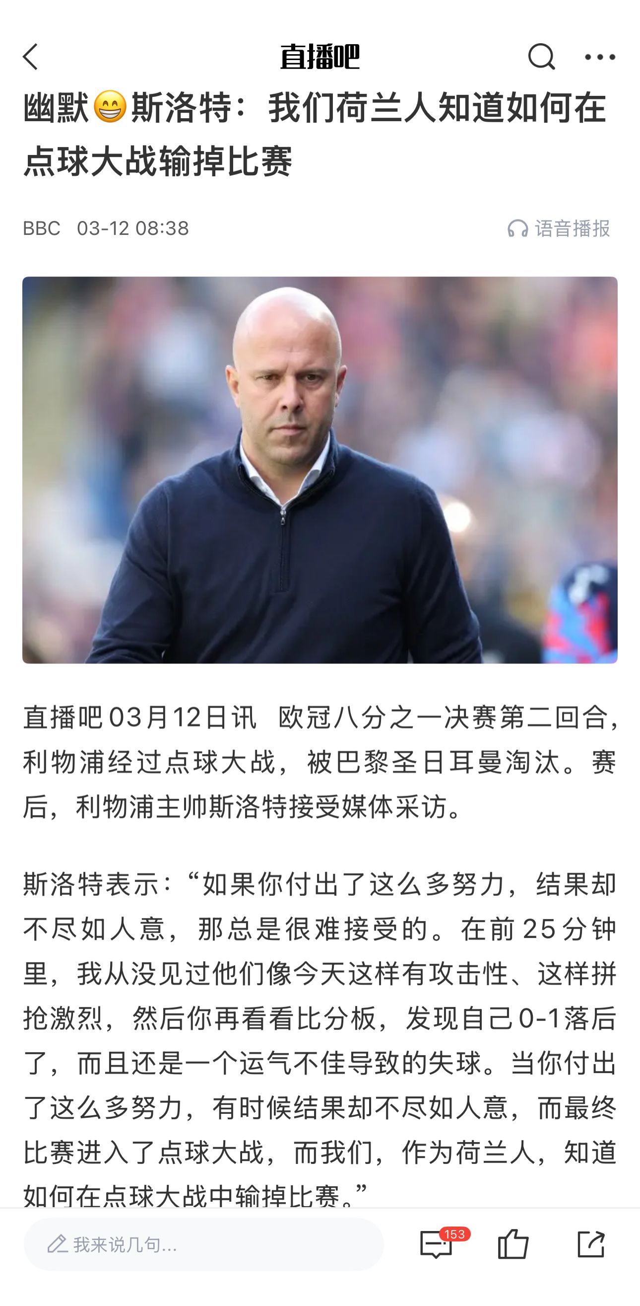 含金量還在上升斯洛特此前采訪:荷蘭人知道如何輸?shù)酎c球大戰(zhàn)