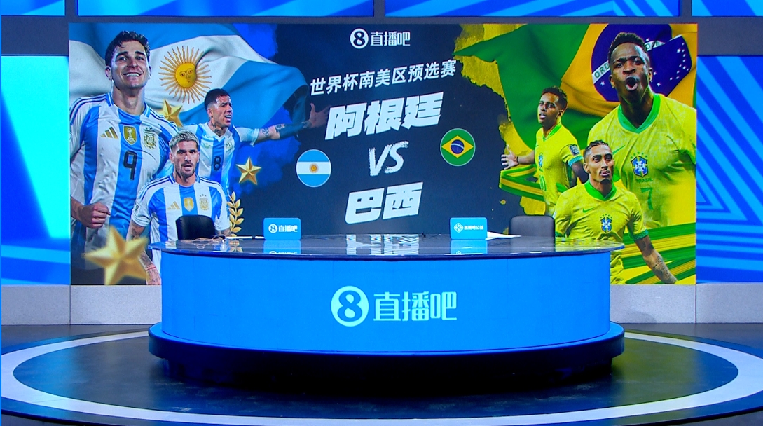 直播吧演播室準備就緒,靜待南美德比!于鑫淼、王正坤解說