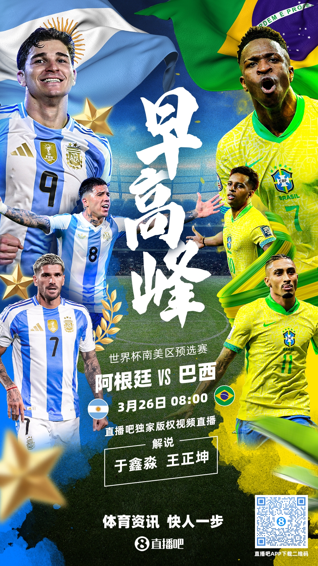 03月26日訊 世預(yù)賽南美區(qū)預(yù)選賽第14輪,阿根廷vs巴西,雙方首發(fā)出爐,將帶來免費(fèi)獨(dú)家視頻直播。